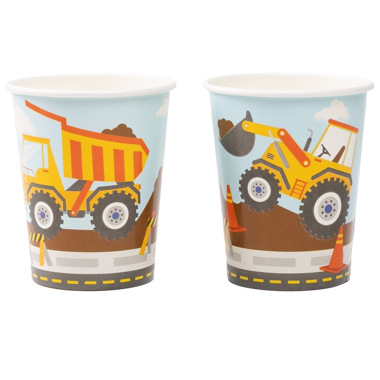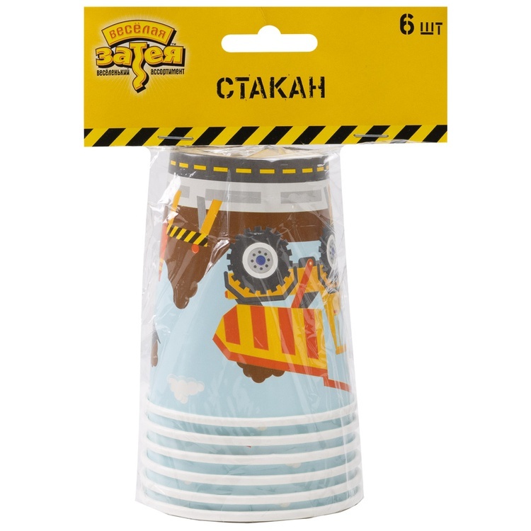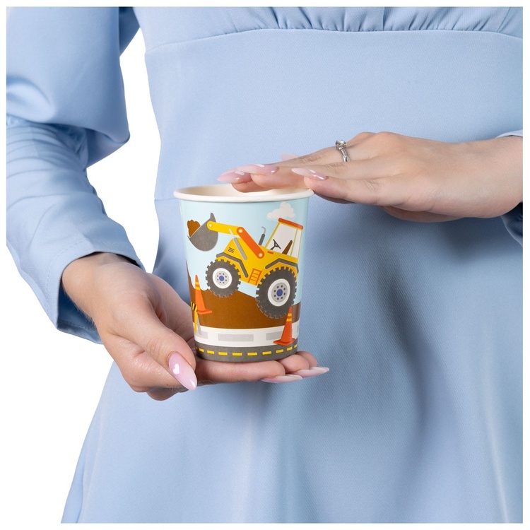 Бумажные стаканы с рисунком строительной техники создадут тёплую и праздничную атмосферу на любом мероприятии.
