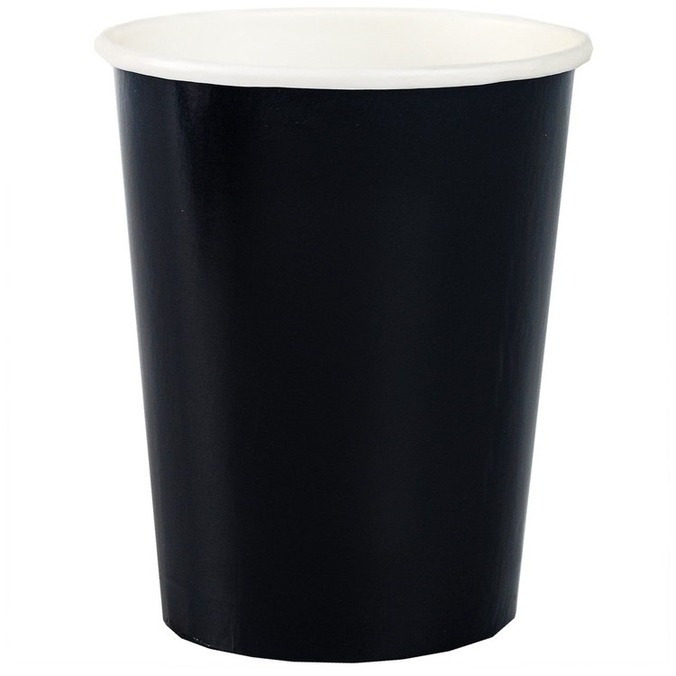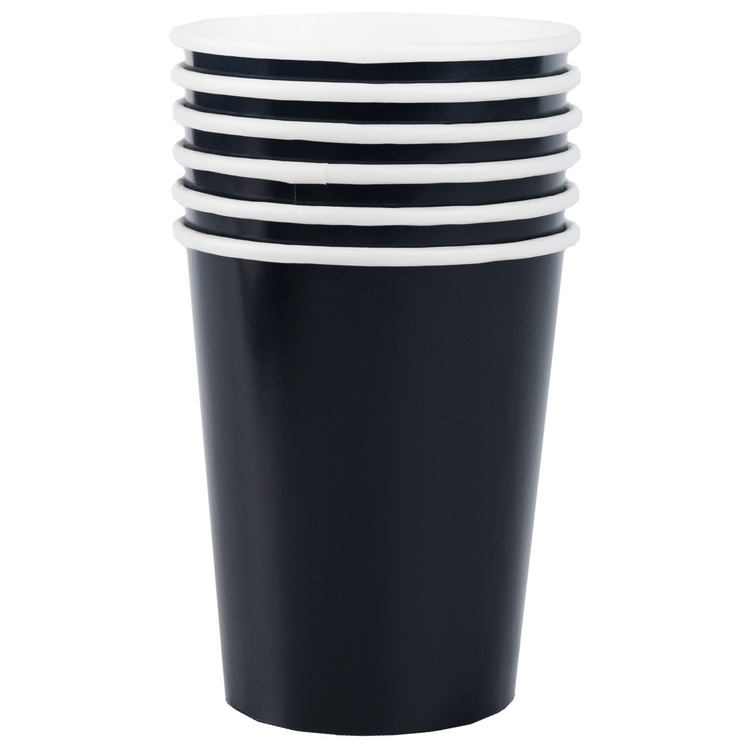 Бумажные стаканчики в черном цвете — это не только удобный, но и стильный элемент для сервировки напитков на любом мероприятии.