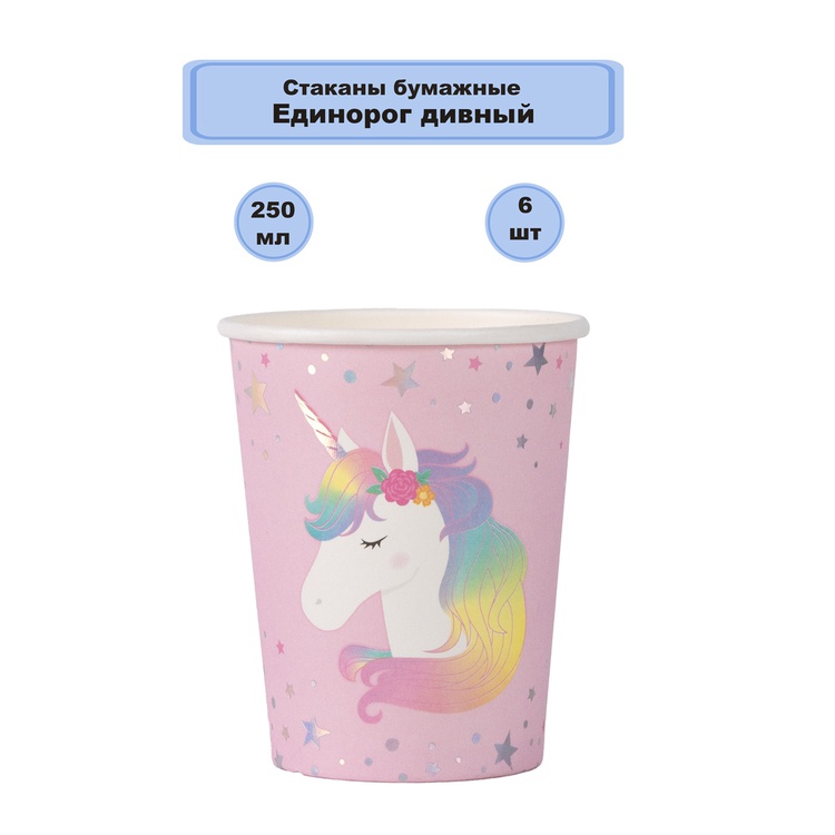 Бумажные стаканы из коллекции «Единорог дивный» создадут тёплую и праздничную атмосферу на любом мероприятии.