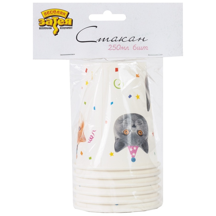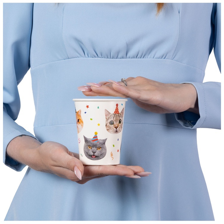 Бумажные стаканы с реалистичными изображениями очаровательных котиков создадут тёплую и праздничную атмосферу на любом мероприятии.
