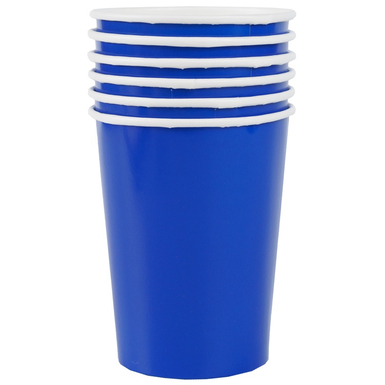 Бумажные стаканчики в синем цвете — это не только удобный, но и стильный элемент для сервировки напитков на любом мероприятии.