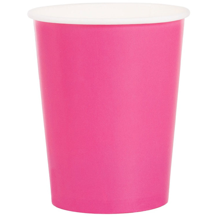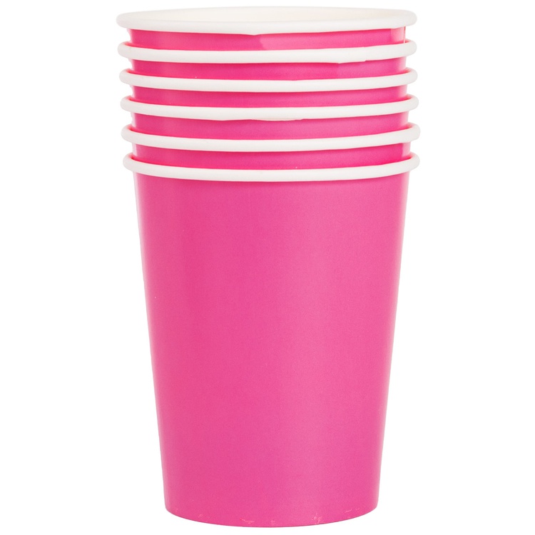 Бумажные стаканчики в ярко-розовом цвете — это не только удобный, но и стильный элемент для сервировки напитков на любом мероприятии.