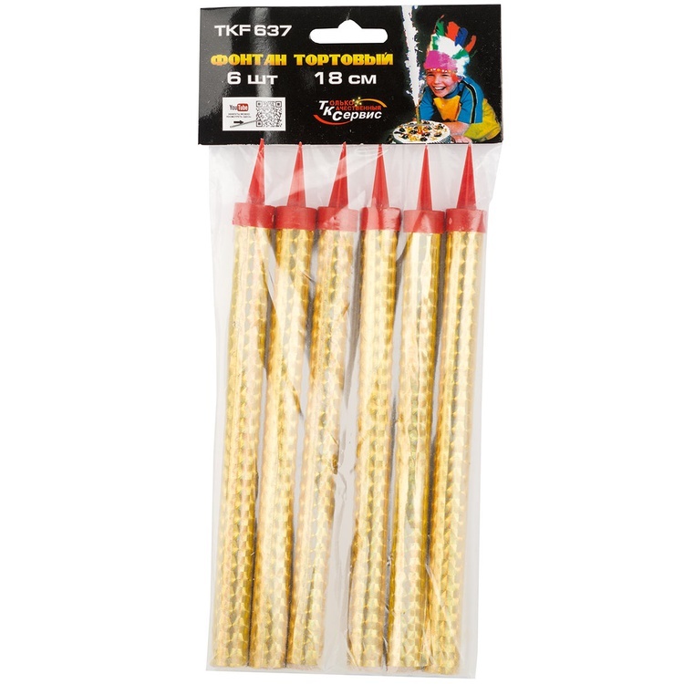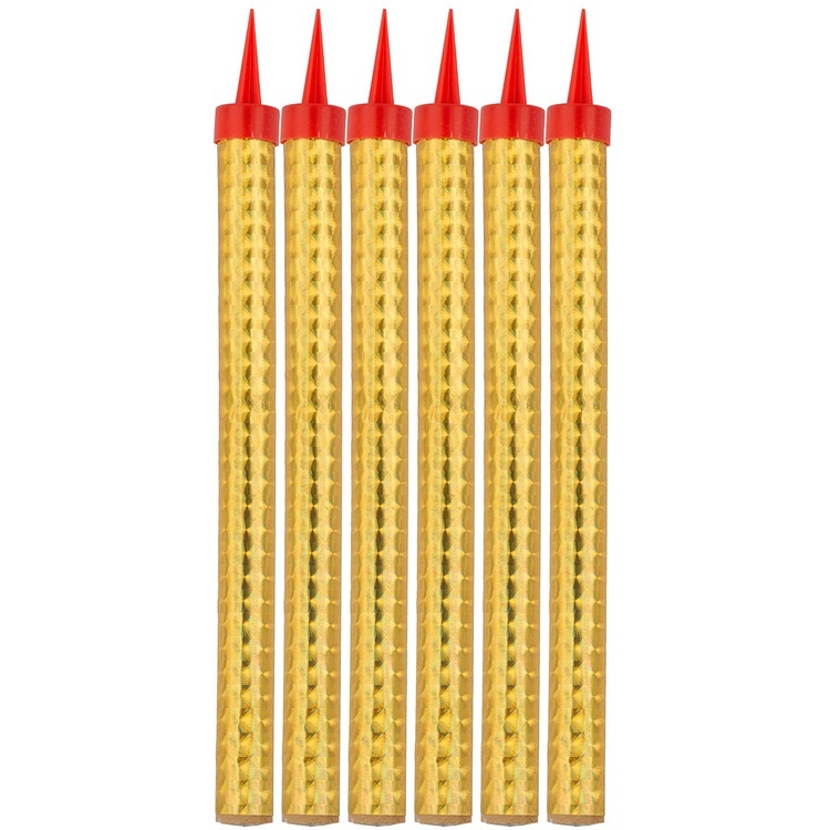 Каждая свеча оснащена пластмассовой пикой для удобной установки. Высота свечи — 18 см, время горения — 50 секунд. В упаковке 6 свечи.