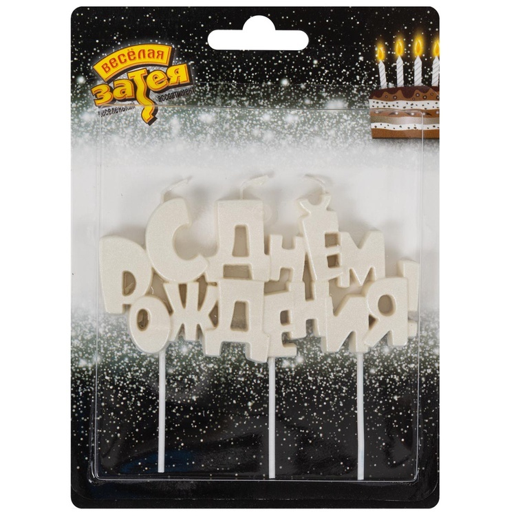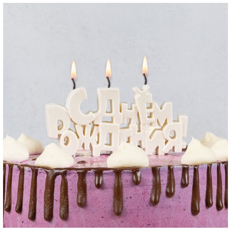 Цельная свеча с надписью «С ДНЁМ РОЖДЕНИЯ» станет эффектным украшением праздничного торта. Установлена на трёх шпажках, благодаря чему легко и надёжно крепится в десерте.