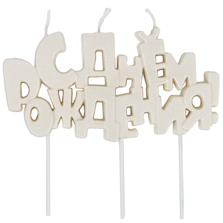 Свеча цельная «С ДНЁМ РОЖДЕНИЯ» жемчужная перламутровая на шпажках, 10 см