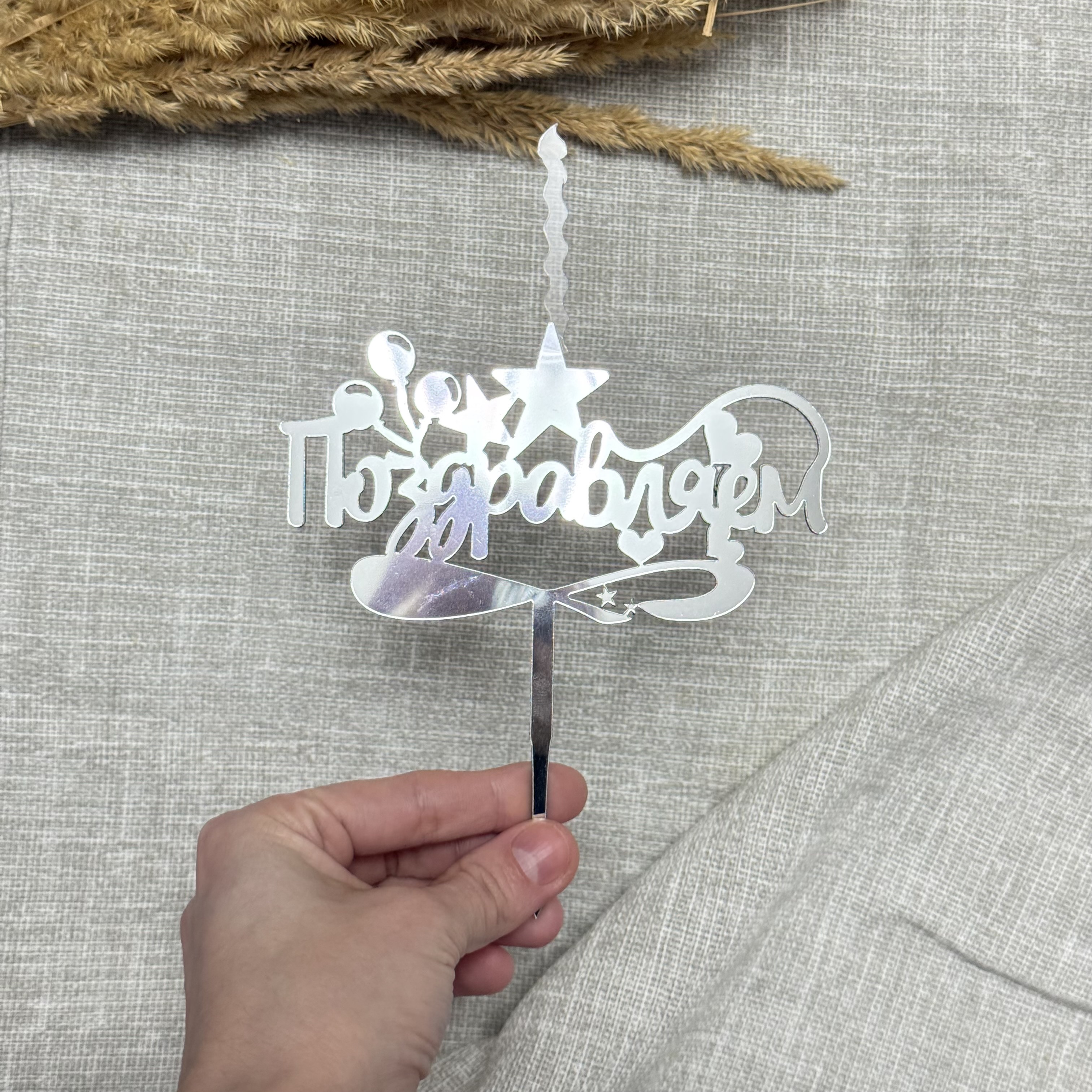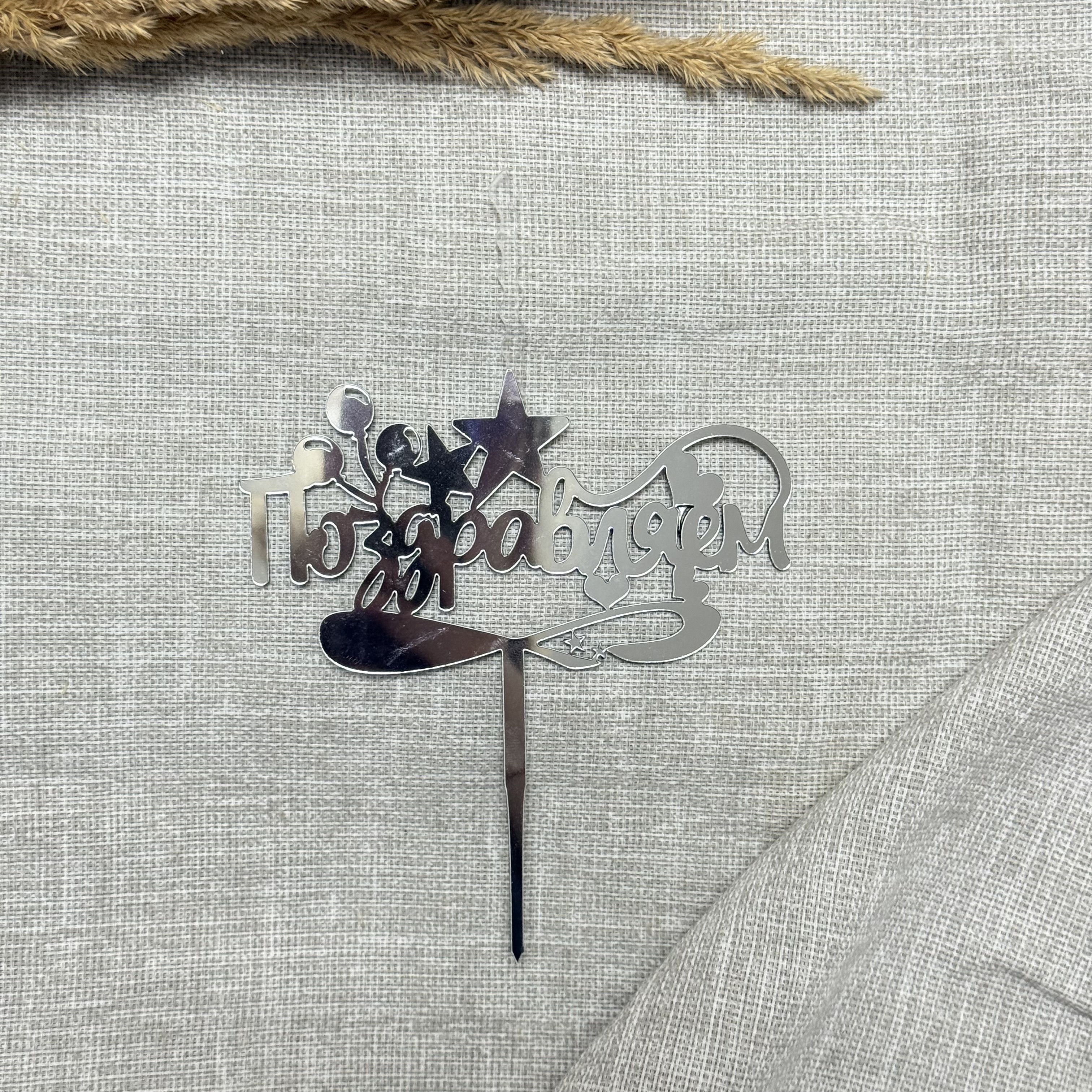 Свеча-топпер «Поздравляем» в серебярном цвете