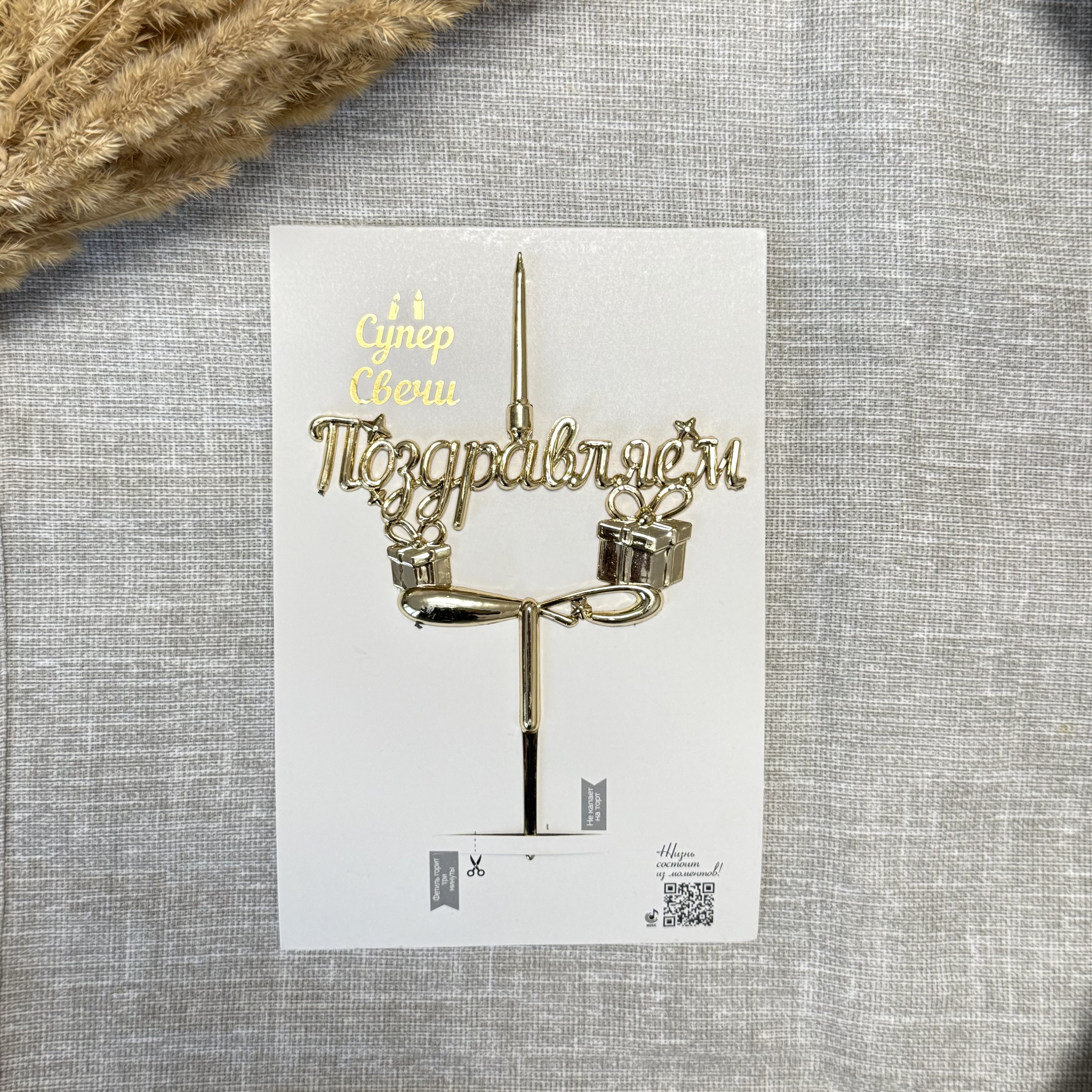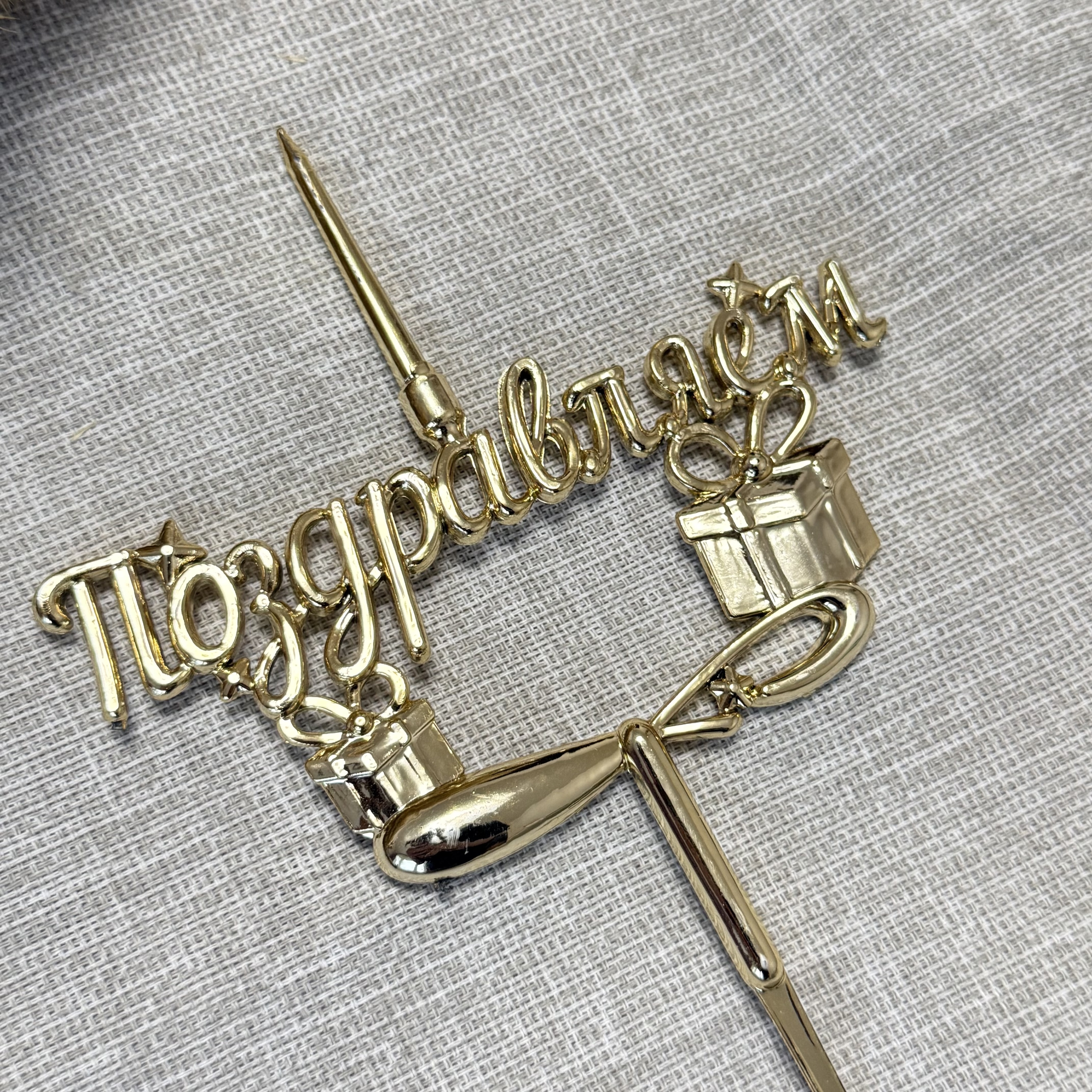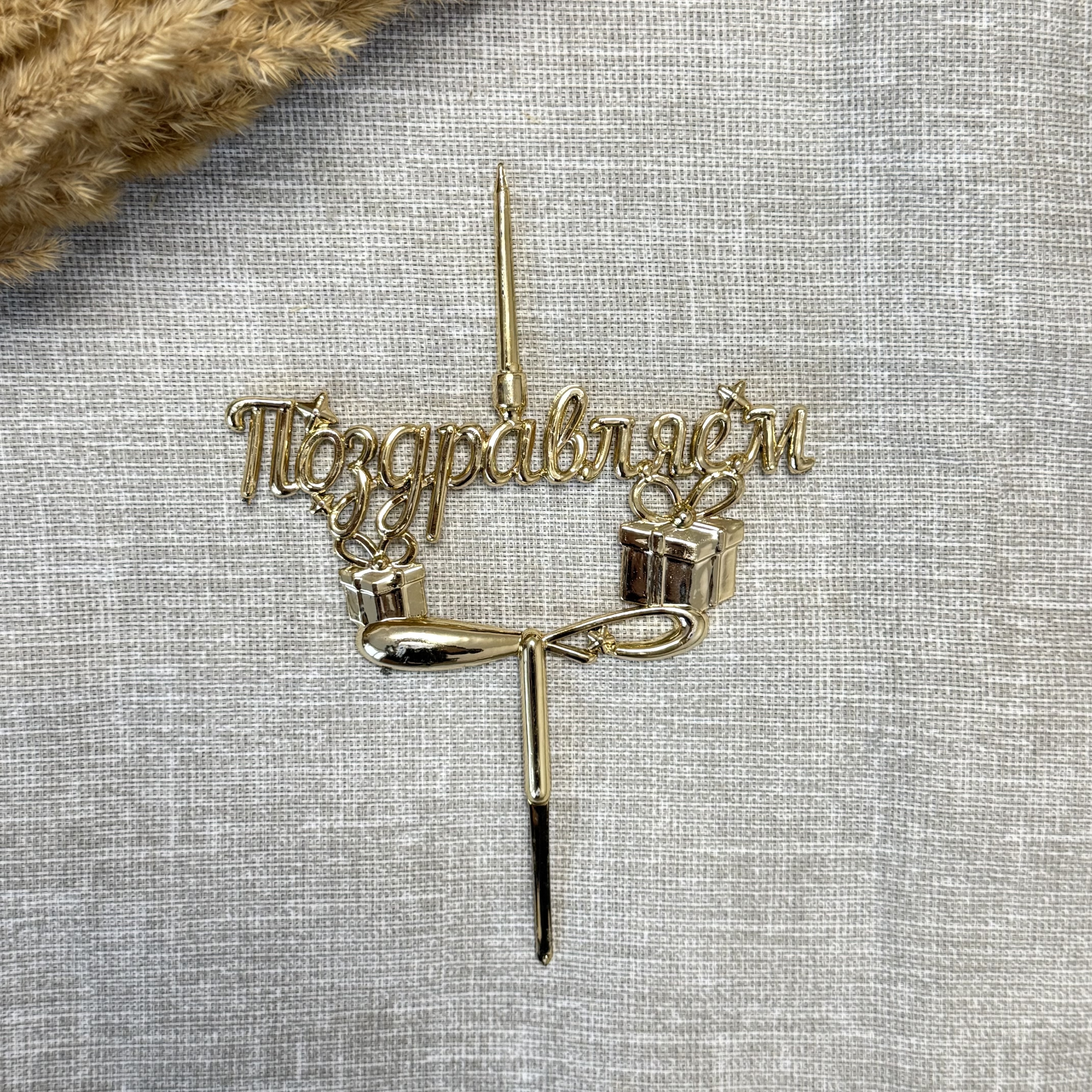 Свеча-топпер 3D «Поздравляем» в золотом цвете