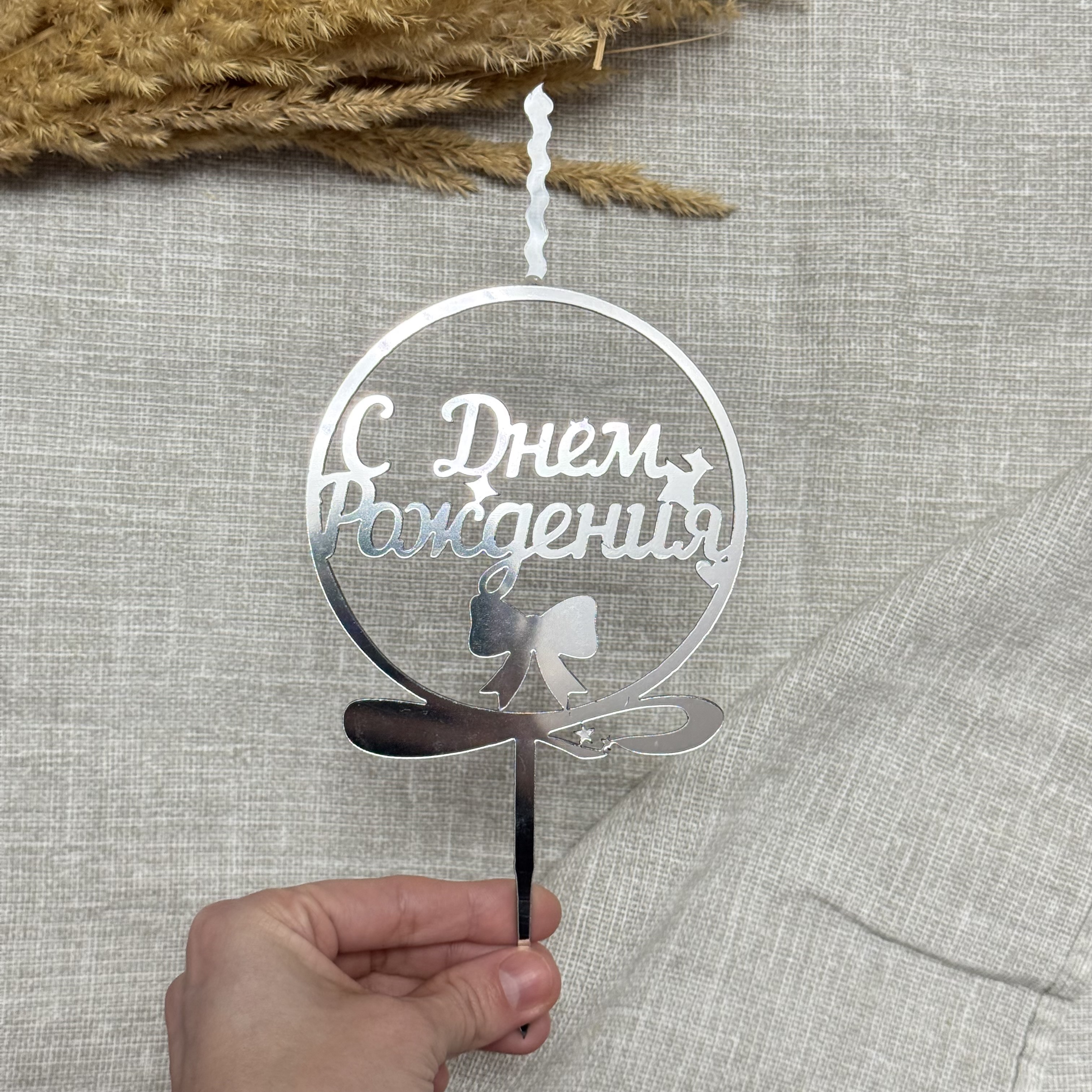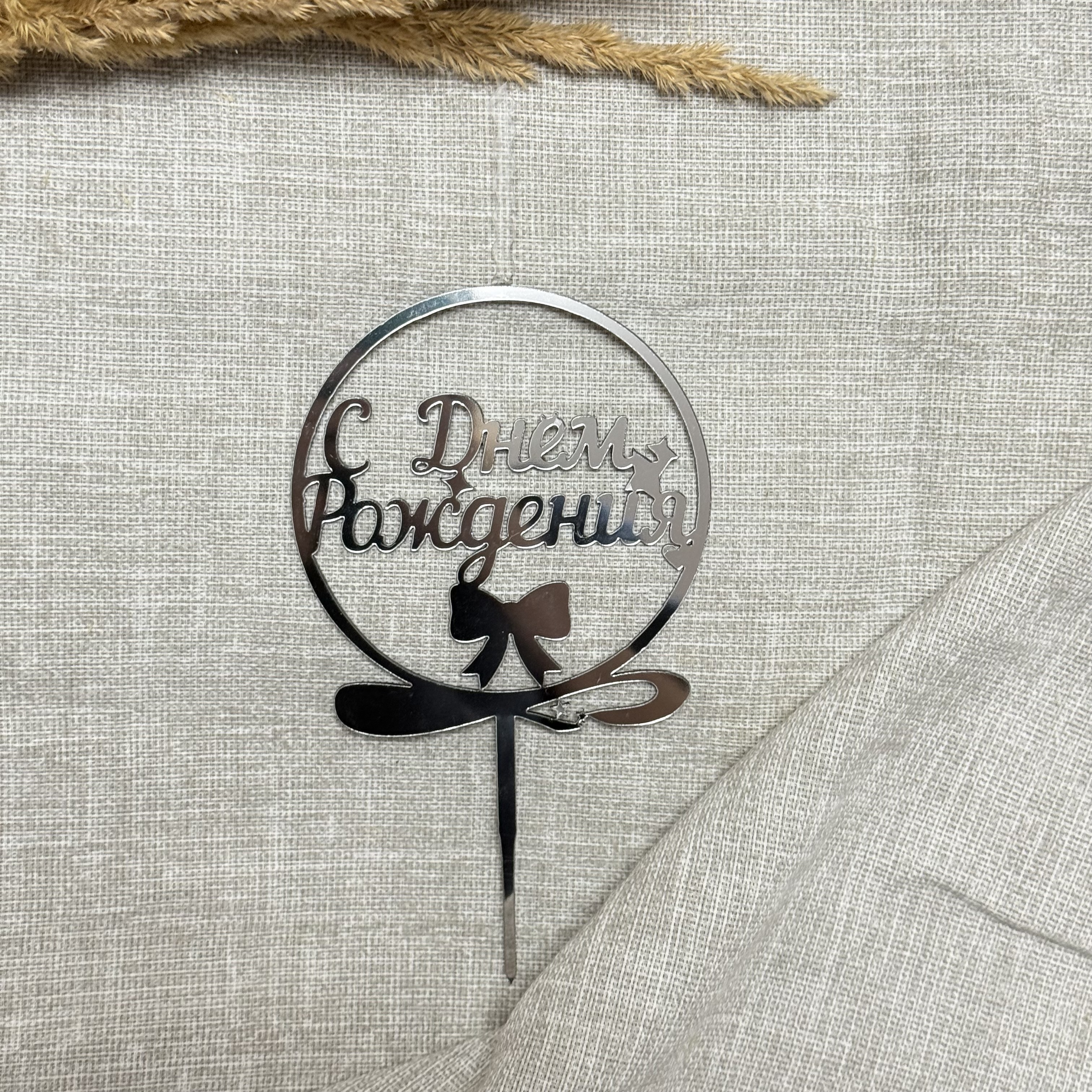 Свеча-топпер «С Днем Рождения» в серебряном цвете