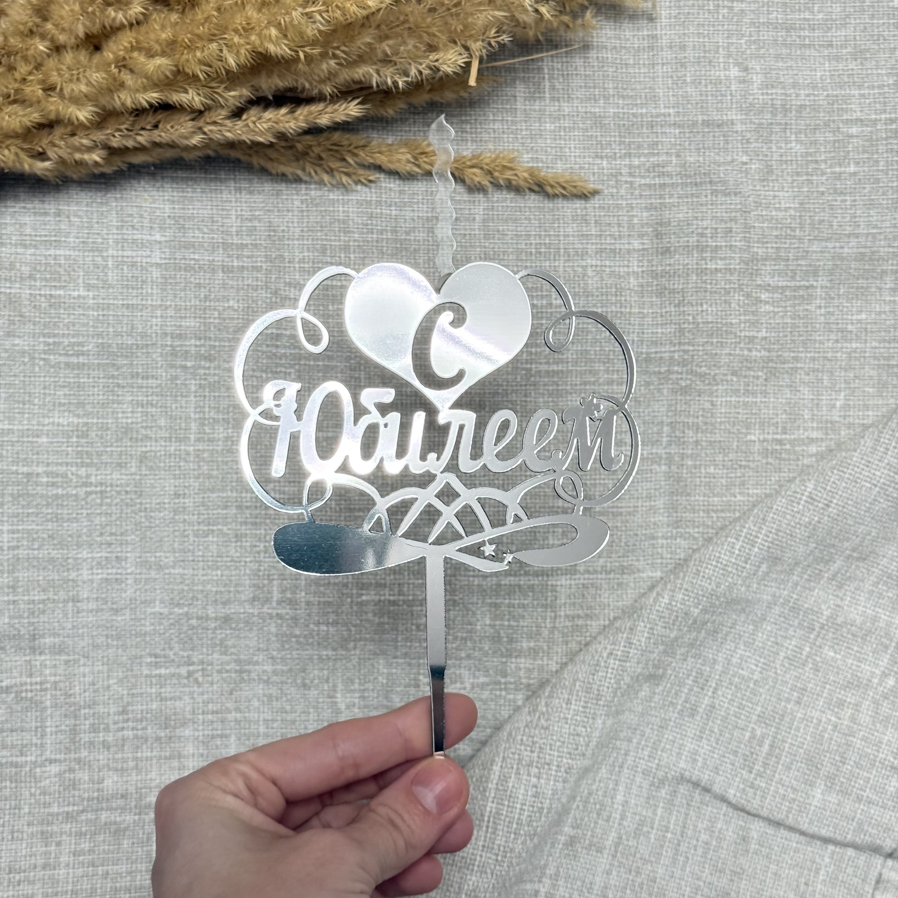 Свеча-топпер «С Юбилеем» в серебряном цвете