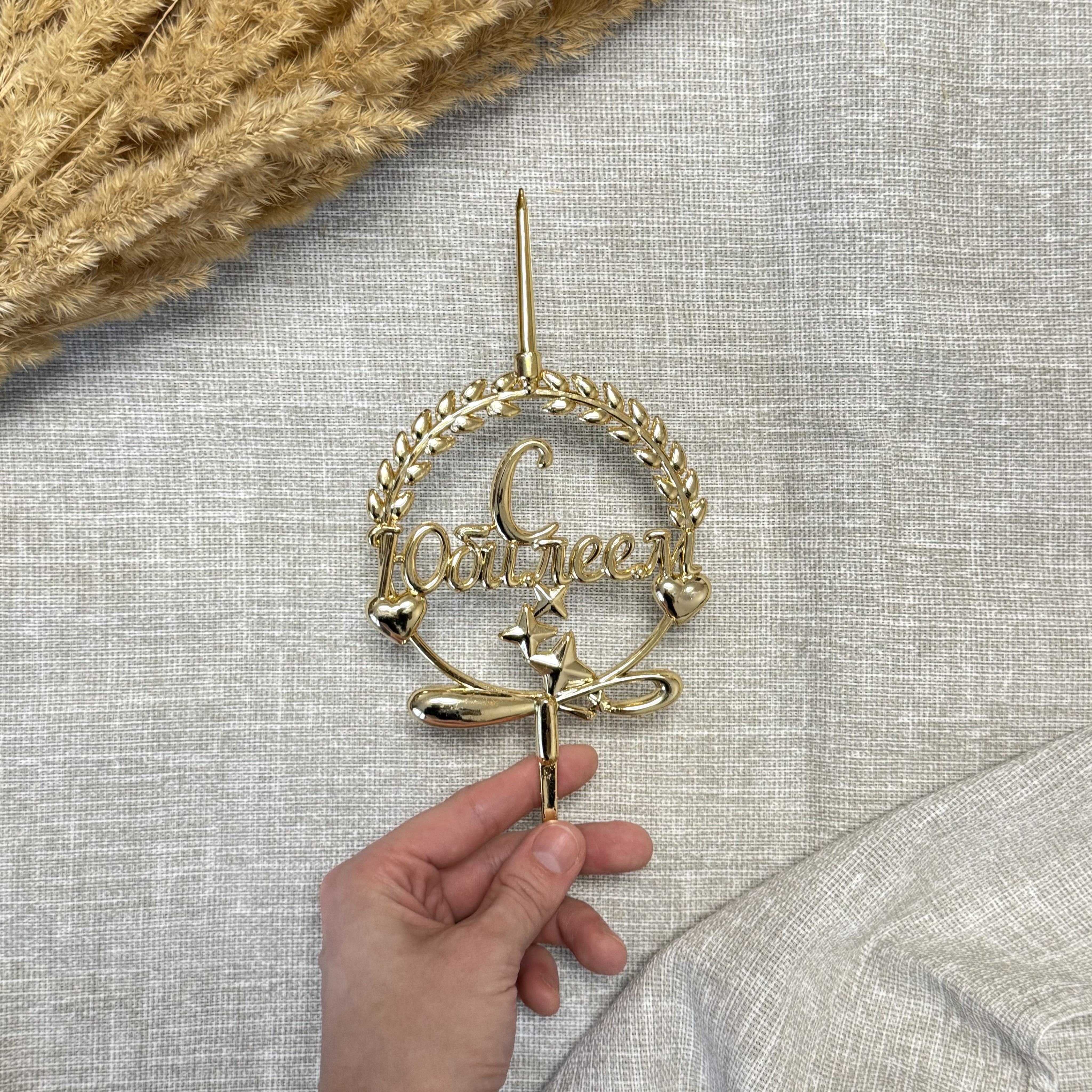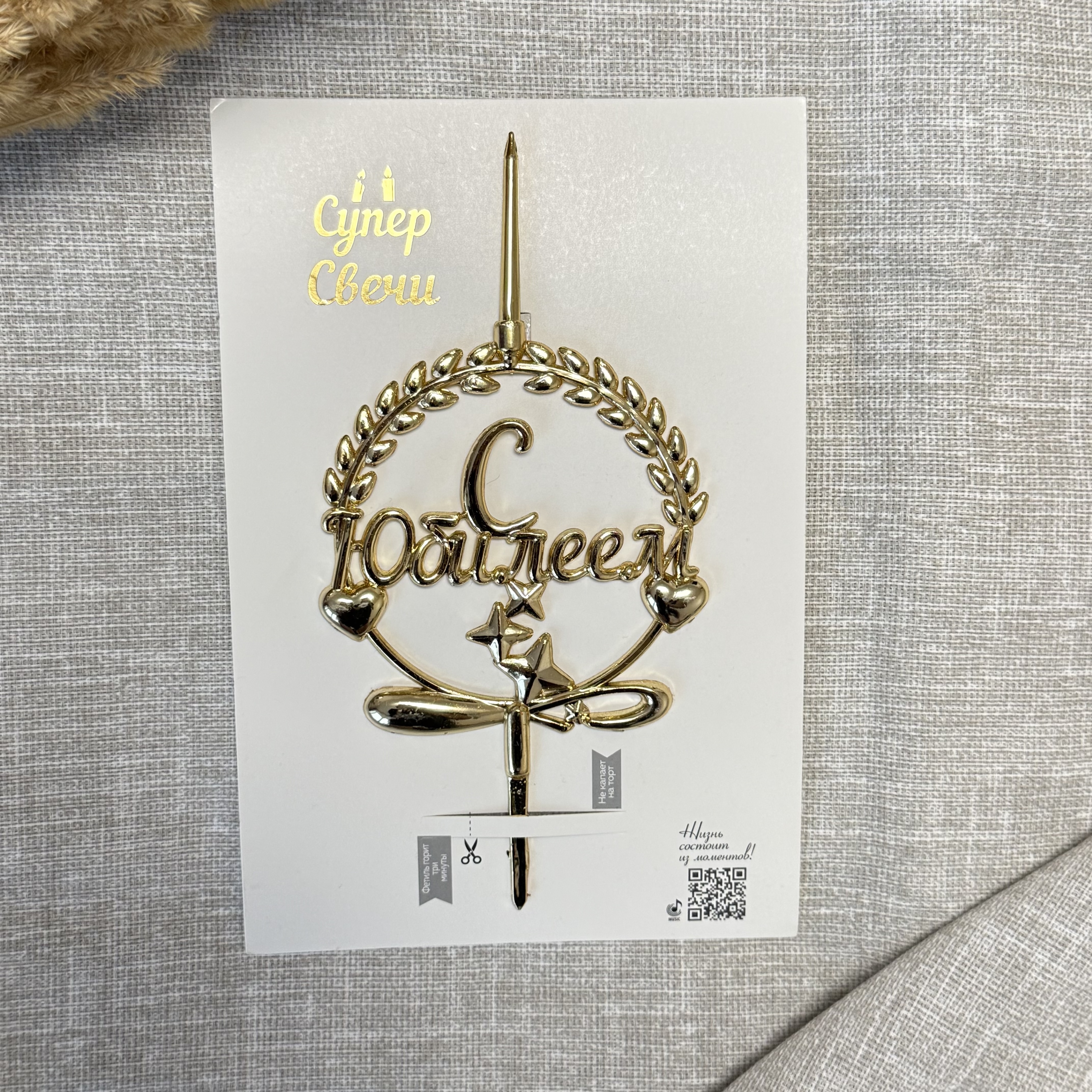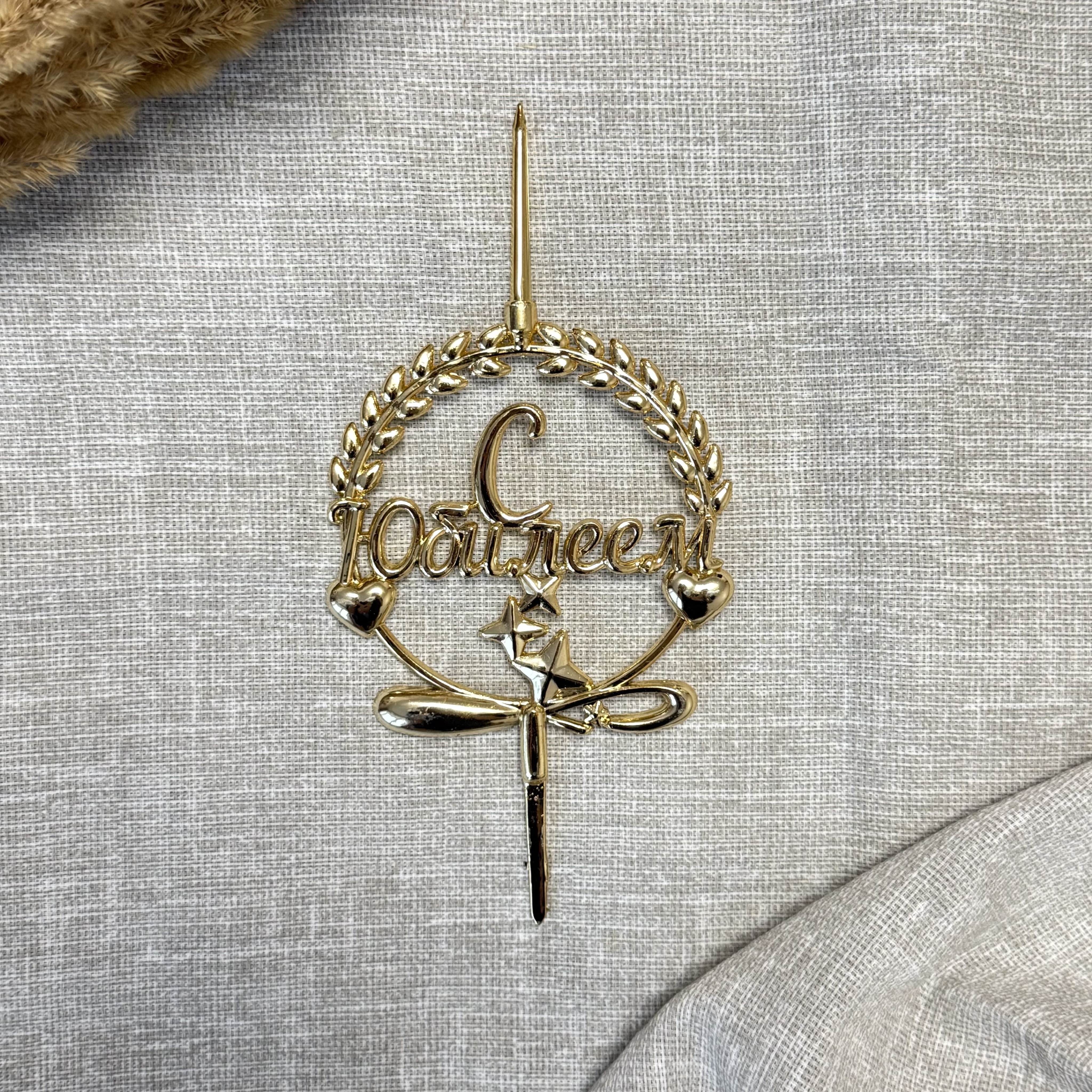 Свеча-топпер 3D «С Юбилеем» в золотом цвете