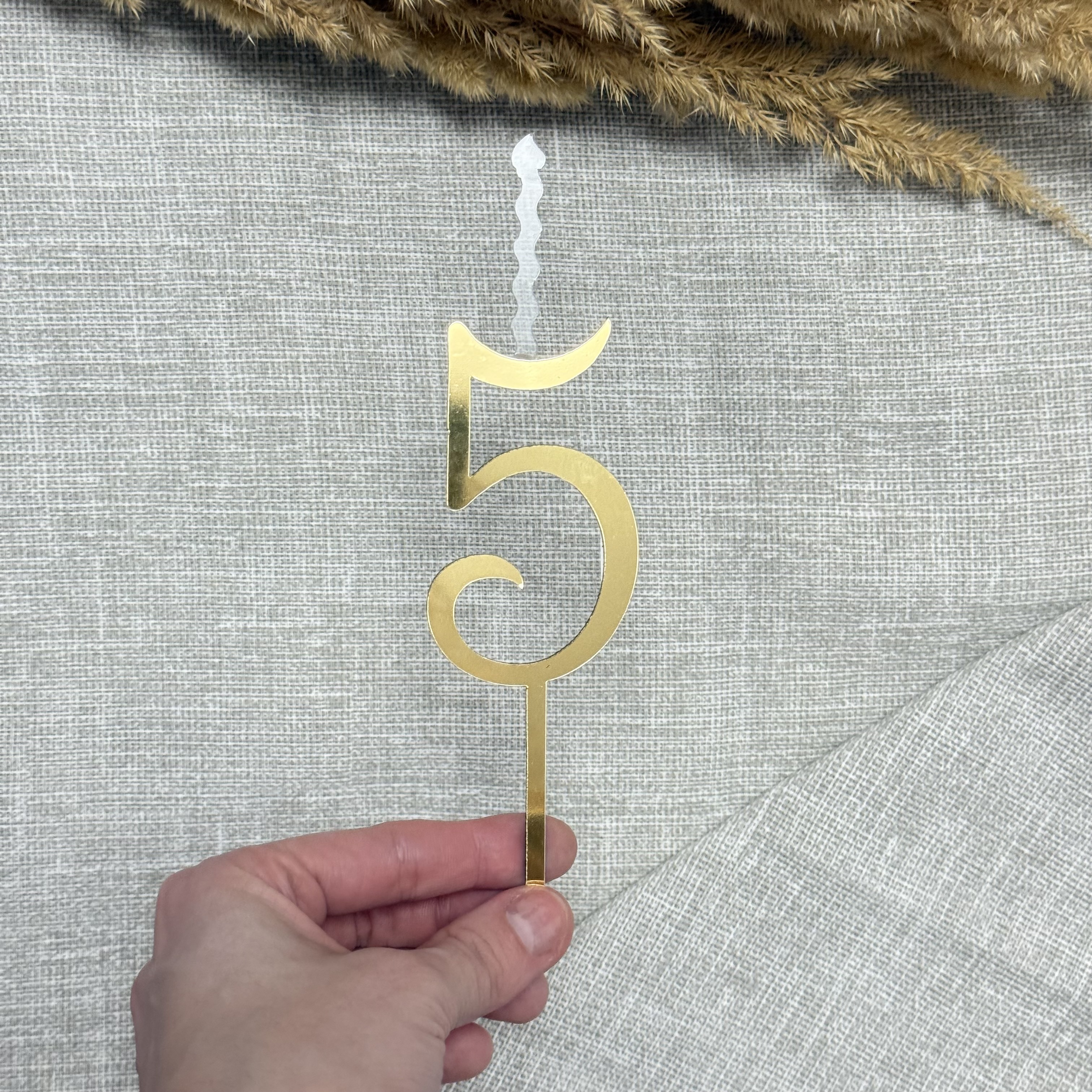 Свеча-топпер цифра «5» в золотом цвете