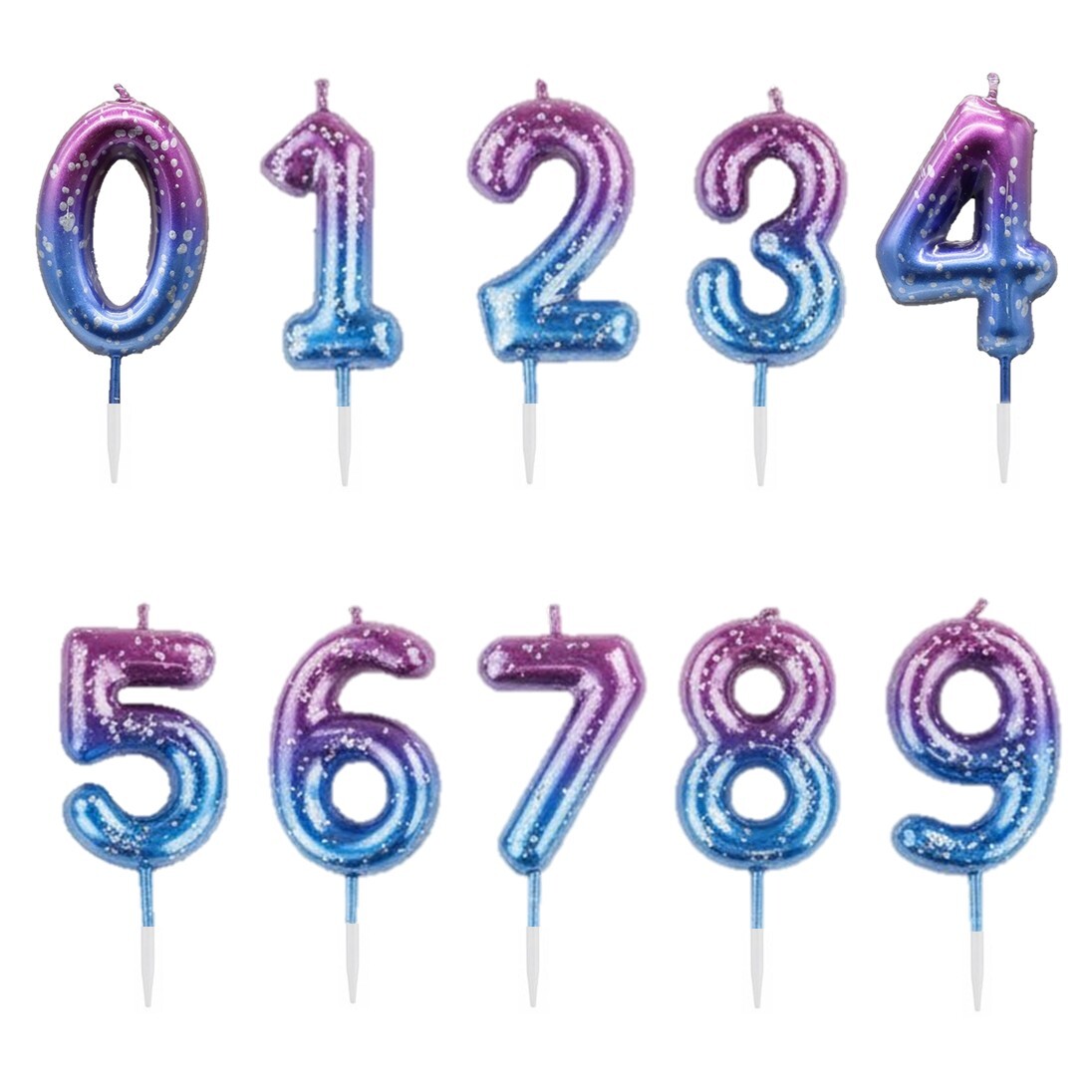 Волшебные свечи-цифры с эффектом градиента «Сияющий космос» создаёт волшебную атмосферу на праздничном торте. Яркие переливы цвета придают свечке глубину и динамику, а шпажка обеспечивает удобное размещение в десерте.