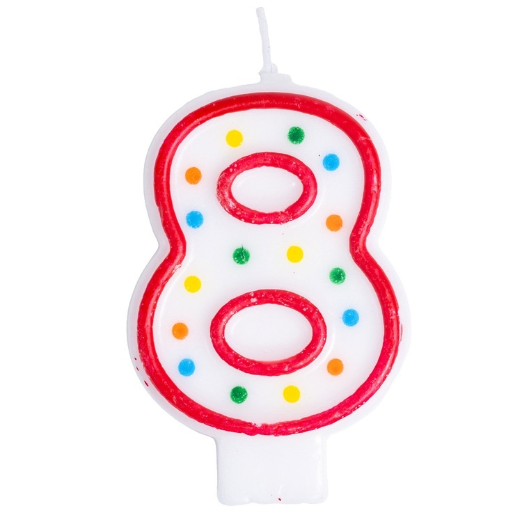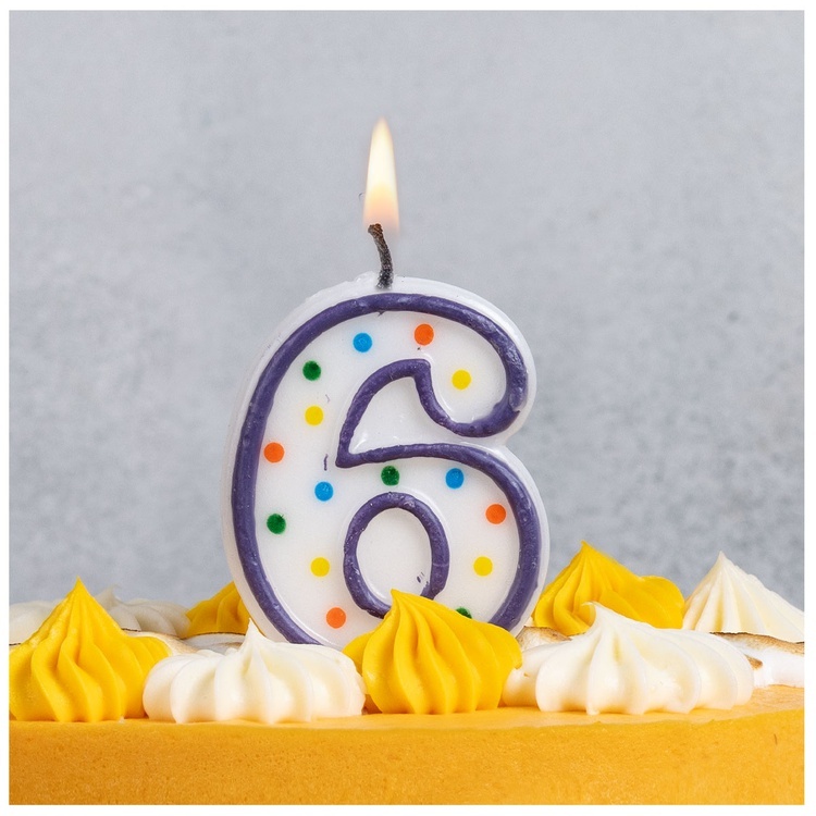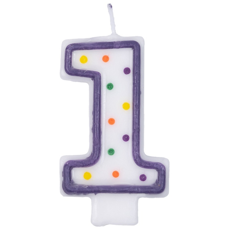 Яркие свечи-цифры с модным принтом в горошек станет эффектным украшением праздничного торта. Двухсторонний рисунок делает композицию выразительной с любого ракурса, добавляя торжеству игривости и стиля.
