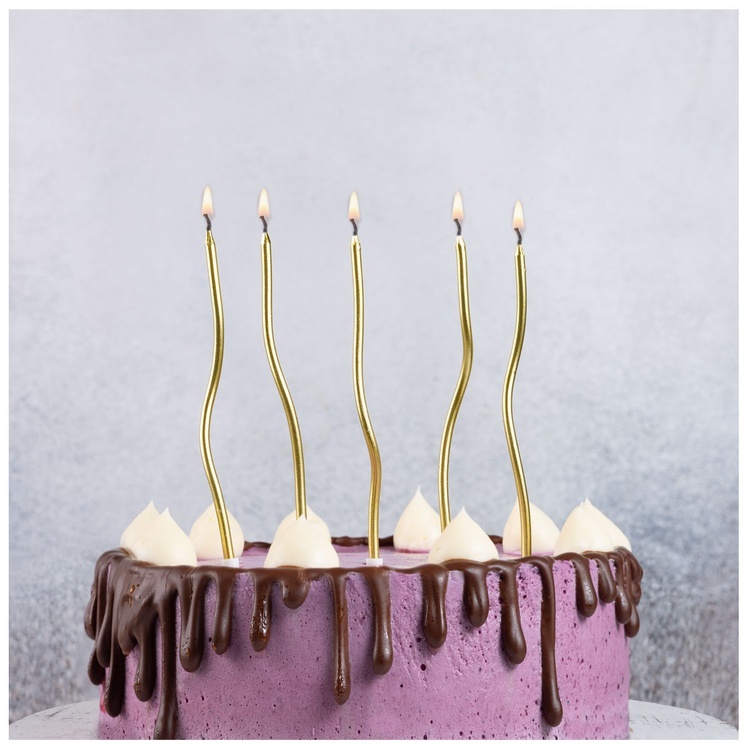 Свечи для торта «Волна» в золотом цвете 13 см, 12 шт