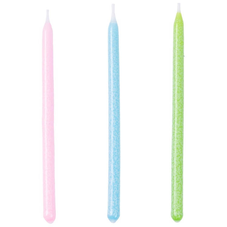 Коллекция свечей в нежных пастельных оттенках — розовом, фисташковом и голубом — словно создана из сладкой карамели. Эти изящные свечи придадут вашему торту изысканный и лёгкий акцент, подчеркнув атмосферу нежности и праздника.
