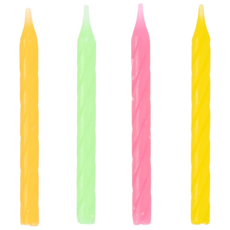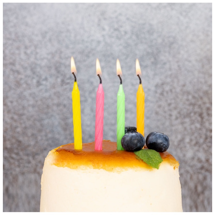 Яркие, неоновые свечи в форме изящных спиралек станут эффектным украшением праздничного торта. Их насыщенные цвета создают атмосферу веселья и радости, добавляя торжеству лёгкость и игривость.