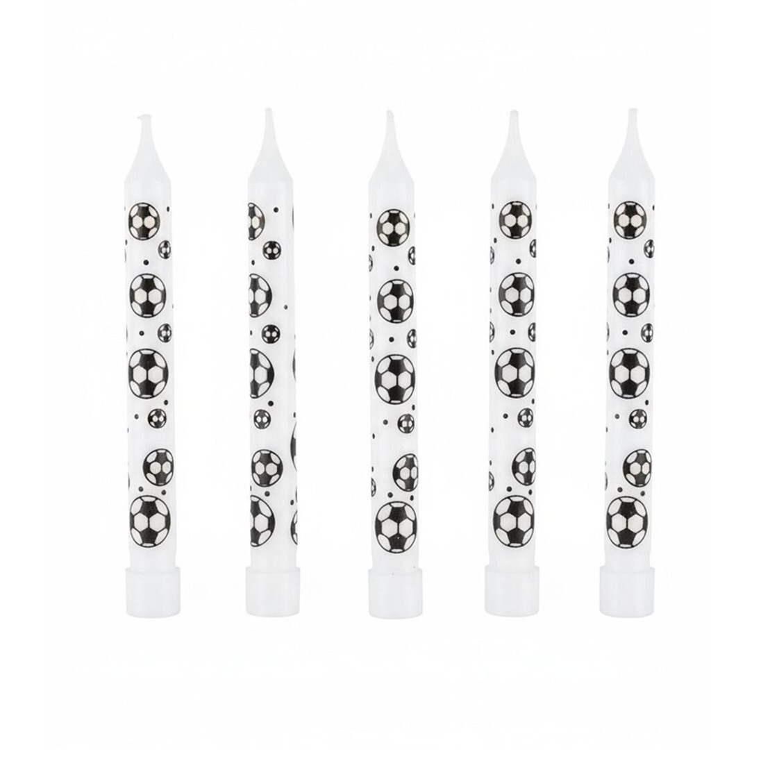 Свечи выполнены в виде миниатюрных футбольных мячей, установленных на удобных держателях для безопасного и устойчивого размещения на торте. Изготовлены из качественного стеарина, не имеют запаха и горят ровным пламенем.