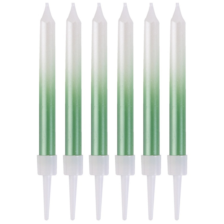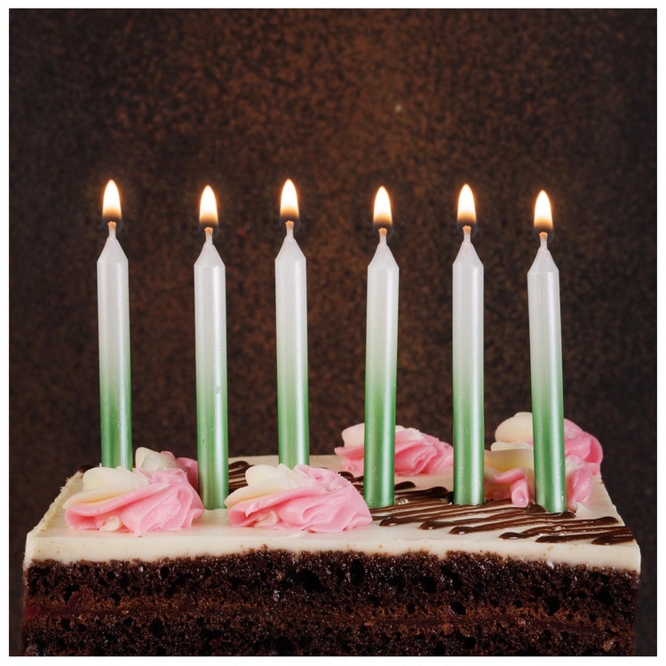Элегантные перламутровые свечи с мягким градиентом создадут атмосферу утончённого праздника. Их сияющее покрытие переливается в свете, добавляя торту особый шарм и выразительность.