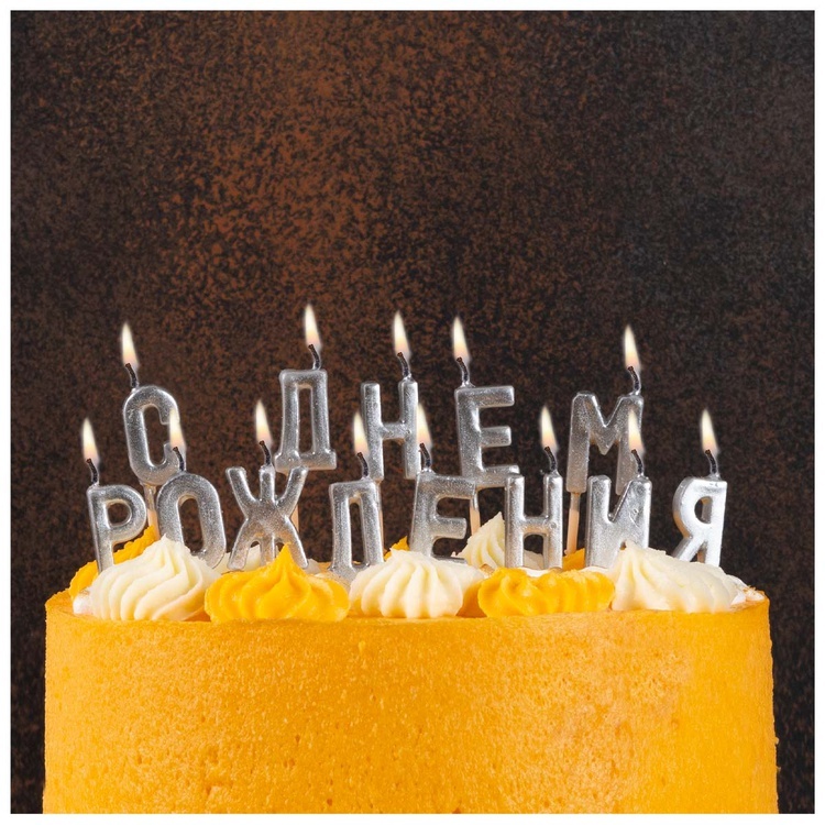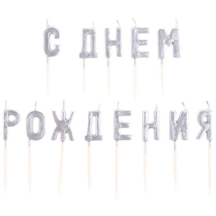 Изящный набор свечей на пиках в благородном серебряном оттенке станет стильным акцентом праздничного торта.