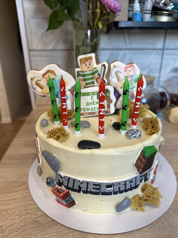 Яркие свечи в стиле «Пиксели» — оригинальное украшение торта для любителей креативных деталей и современных трендов. Геометрический дизайн с акцентом на цвет и форму создаёт эффект стильного минимализма, добавляя празднику атмосферу игривости и динамики.