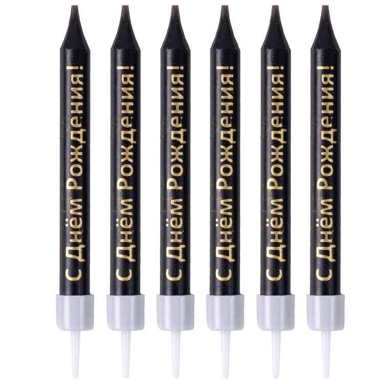 Свечи для торта «С Днем Рождения» черные с золотой надписью 8 см, 6 шт