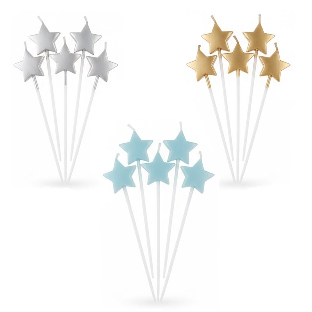 Элегантные свечи «Звезда» в металлическом исполнении — изысканное украшение для торта и праздничного стола. Блестящее покрытие в стиле metallic придаёт свечам премиальный вид и делает их идеальным акцентом для торжественных событий.