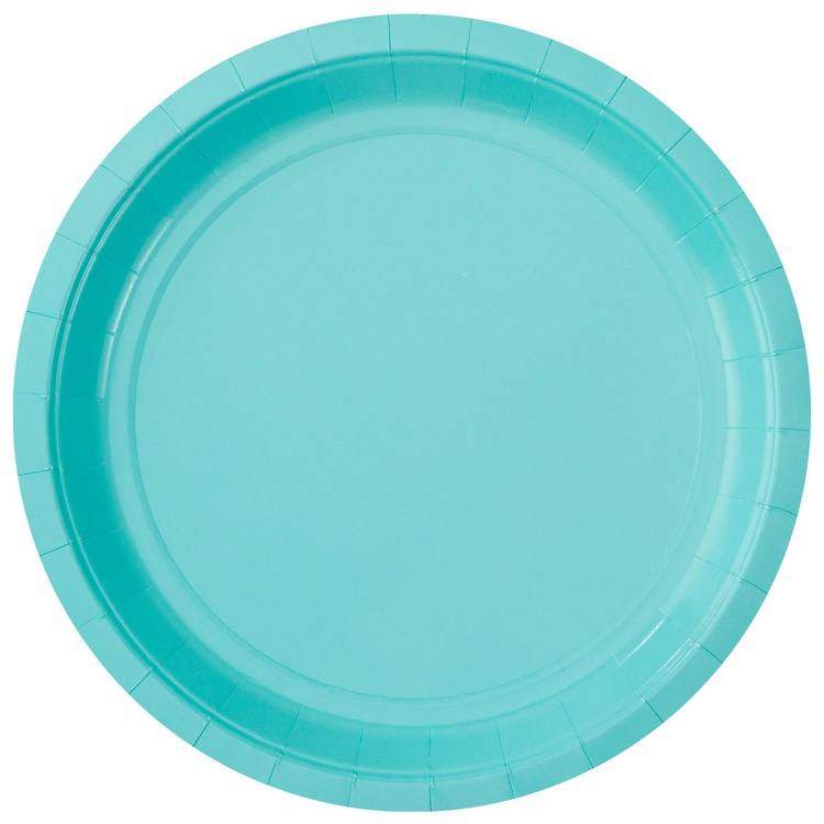 Яркие бумажные тарелки в бирюзовом цвете станут стильным элементом сервировки для праздника. Лаконичное сочетание оттенков подчёркивает торжественность момента и красиво дополняет тематический декор стола.