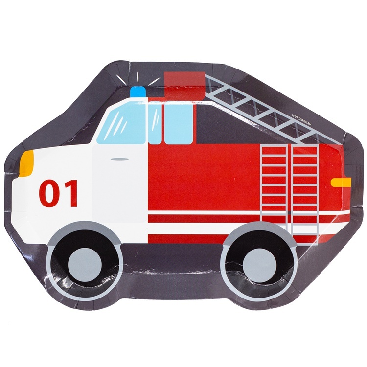 Праздничные фигурные бумажные тарелки в ярком цвете с пожарной машине станут стильным элементом сервировки для праздника. Лаконичное сочетание оттенков подчёркивает торжественность момента и красиво дополняет тематический декор стола.