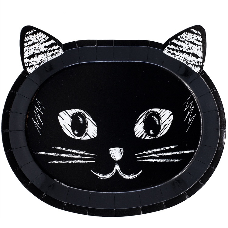 Бумажные тарелки с изображениями милого котика станут стильным украшением праздничного стола.