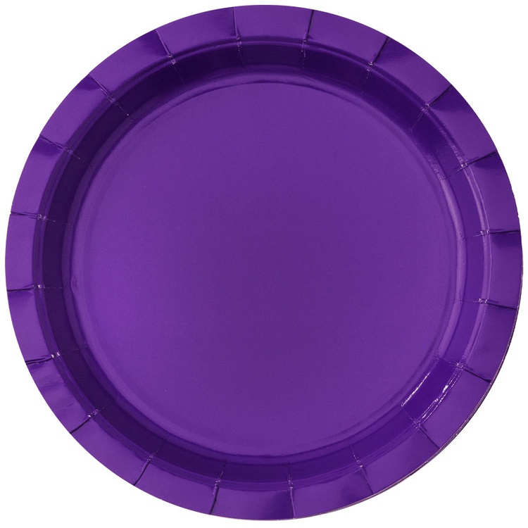 Яркие бумажные тарелки в фиолетовом цвете станут стильным элементом сервировки для праздника. Лаконичное сочетание оттенков подчёркивает торжественность момента и красиво дополняет тематический декор стола.
