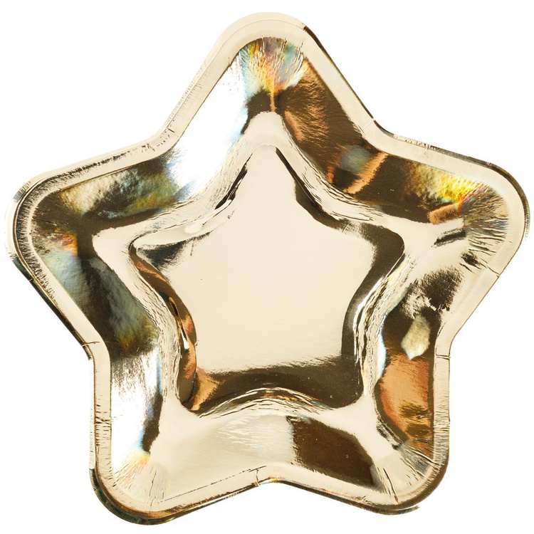 Праздничные фольгированные тарелки в форме звезды станут стильным элементом сервировки. Лаконичное сочетание оттенков подчёркивает торжественность момента и красиво дополняет тематический декор стола.