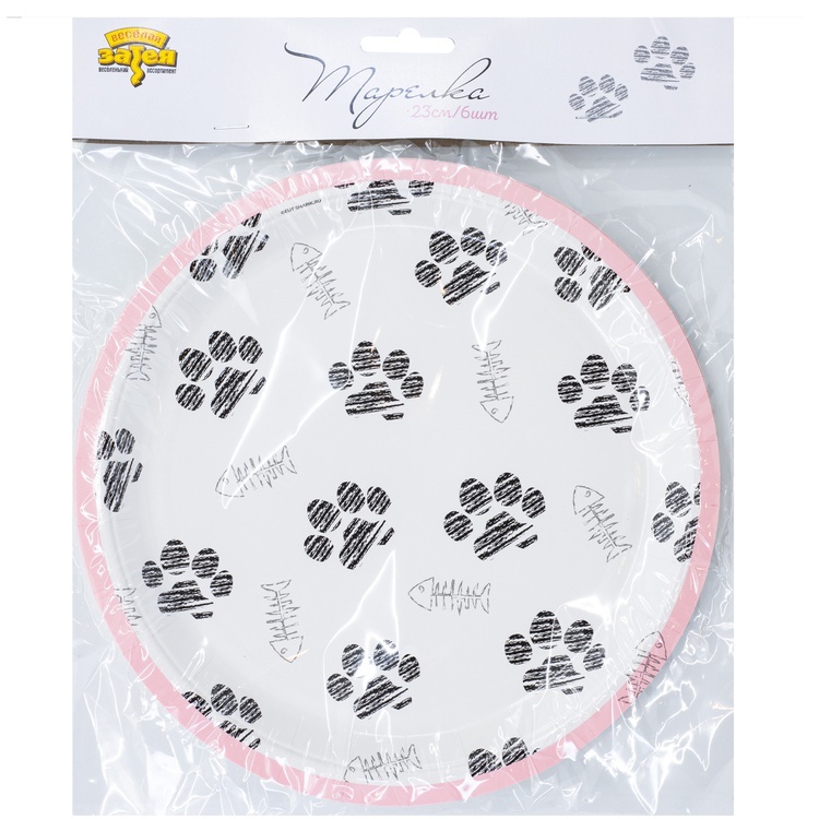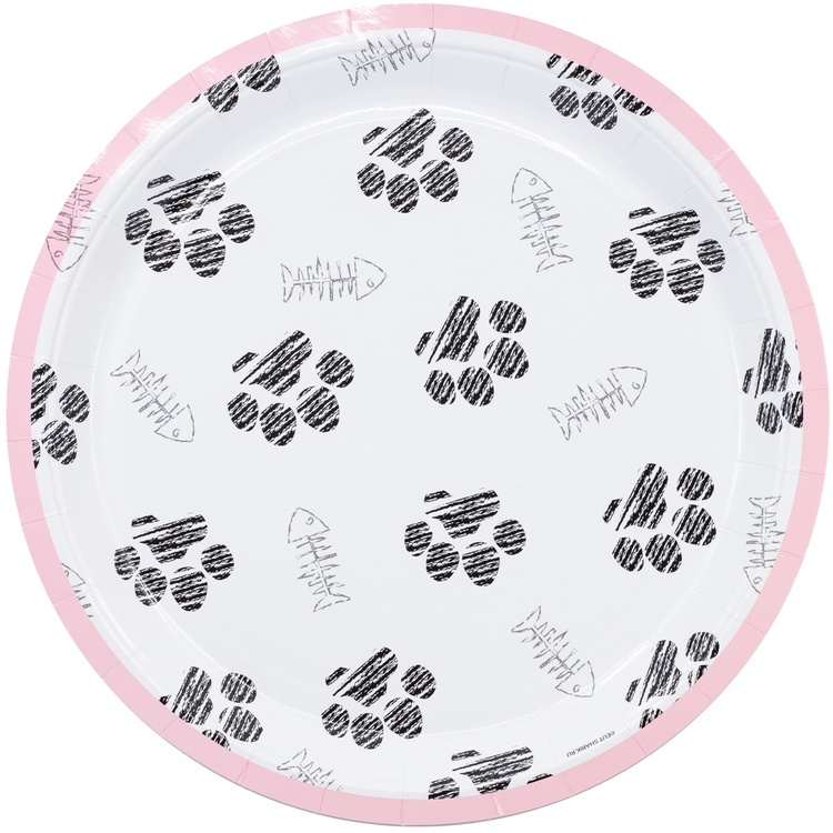Бумажные тарелки с изображениями лапок котиков из коллекции «Котики» станут стильным украшением праздничного стола.