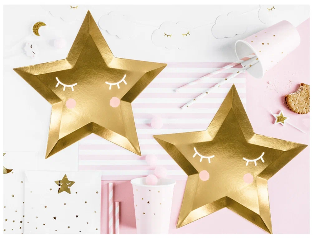 Праздничные бумажные тарелки в форме звезды станут стильным элементом сервировки. Лаконичное сочетание оттенков подчёркивает торжественность момента и красиво дополняет тематический декор стола.