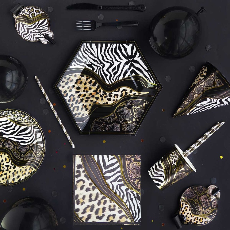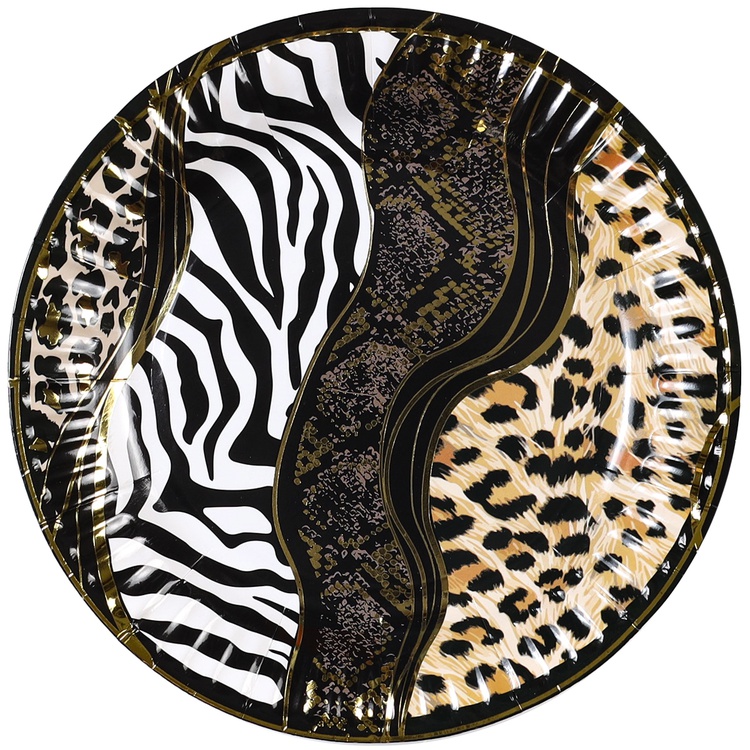Стильные бумажные тарелки в стиле Сафари — это оригинальный и яркий элемент сервировки, который подойдёт для оформления праздничного стола.