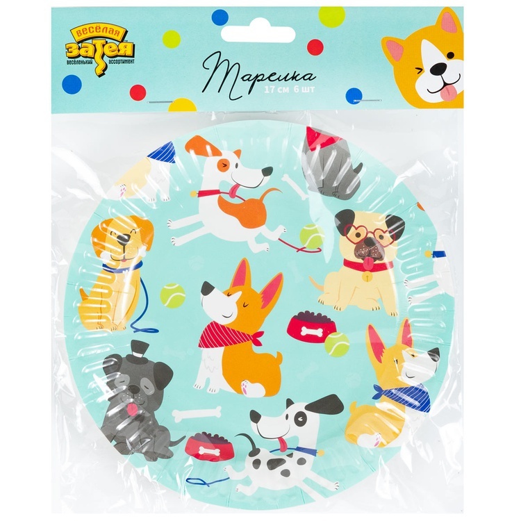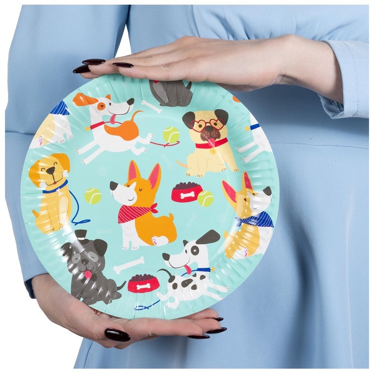 Бумажные тарелки с изображениями милых собачек станут стильным украшением праздничного стола.