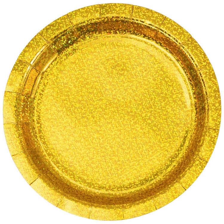 Бумажные тарелки с голографическом блеском станут стильным элементом сервировки для праздника. Лаконичное сочетание оттенков подчёркивает торжественность момента и красиво дополняет тематический декор стола.