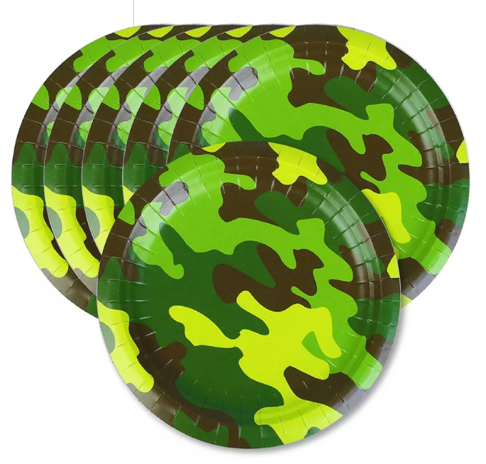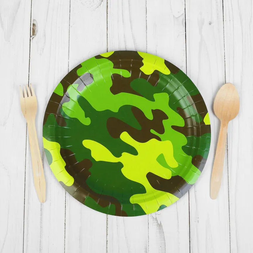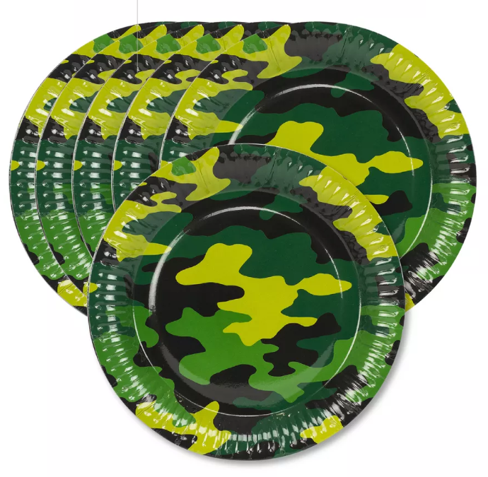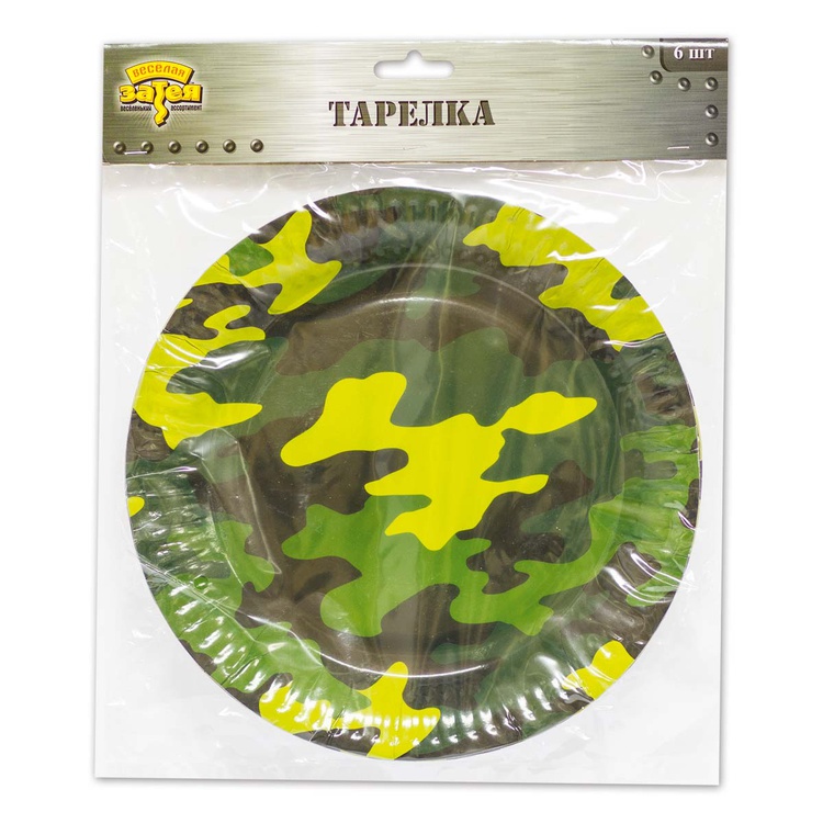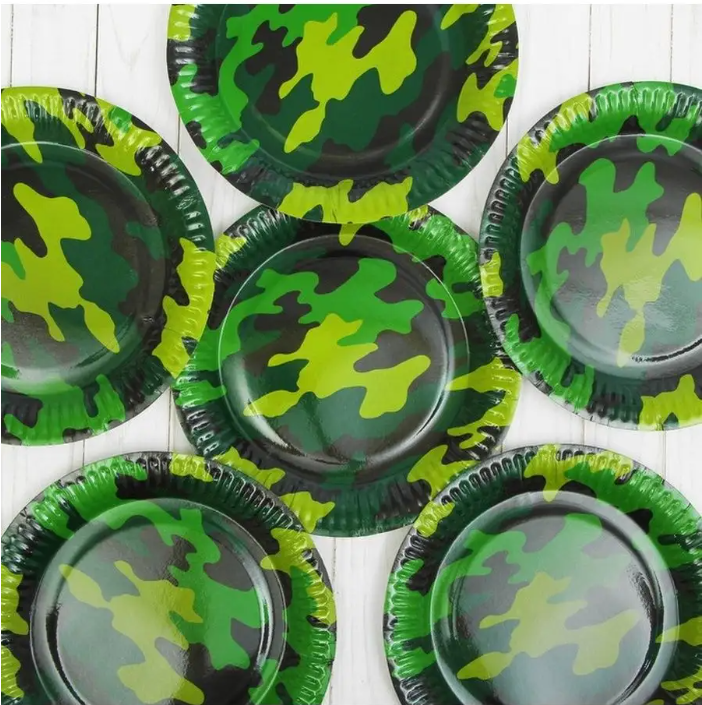 Бумажные тарелки из коллекции «Камуфляж» — это отличный выбор для создания стильного и тематического оформления праздничного стола.