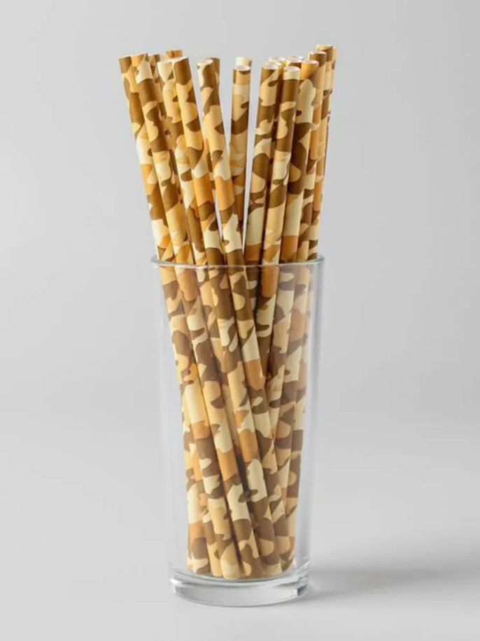 Стильные бумажные трубочки в камуфляжном стиле— изящное украшение праздничного стола. Современный дизайн и праздничный узор создают настроение лёгкости и радости.
