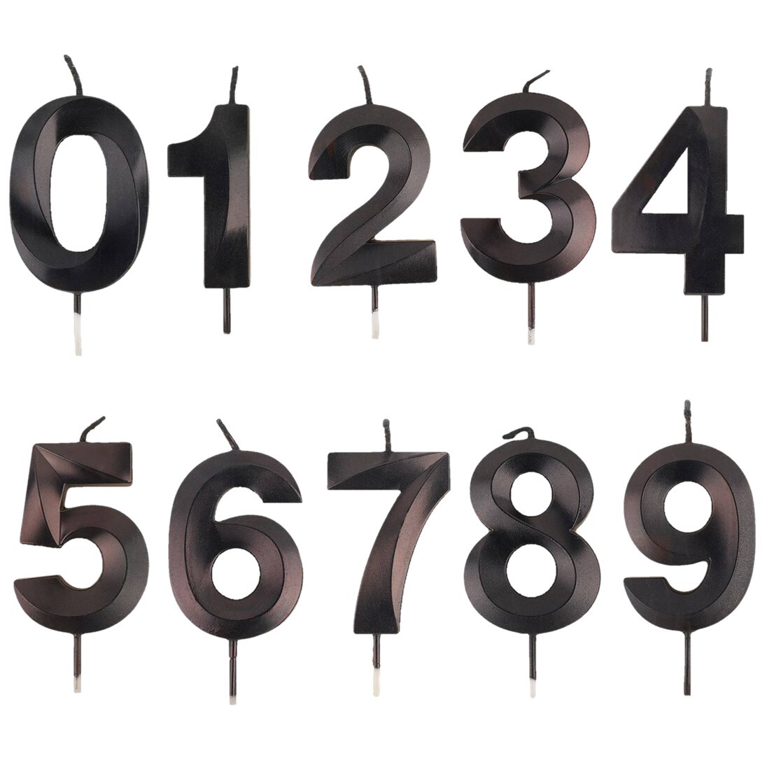 Элегантные свечи цифры в оттенке чёрного металлика добавит торжественности и стиля любому празднику. Её благородный металлический блеск эффектно переливается при свете свечей и создаёт атмосферу изысканности.