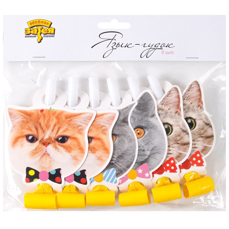 Весёлые язычки-гудки с ярким дизайном «Котики» станут эффектным дополнением любого праздника. При каждом выдохе они издают забавный звук и разворачиваются в яркую форму, создавая атмосферу радости и веселья.